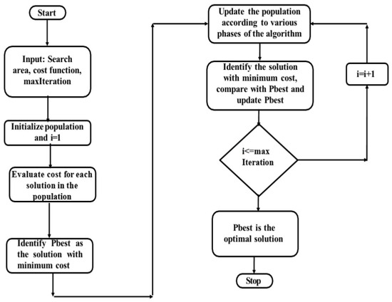 These algorithms initially identify random candidate solutions within the acceptable range. These candidate solutions are then iteratively updated in the exploration and exploitation phases, which are represented by mathematically modeling various natural behaviors. The exploration phase searches for better solutions in the entire region, whereas exploitation search is a more focused search in a small region [10]. These optimization algorithms can be used in a variety of applications. According to the needs of each application, a cost function must be defined for evaluating the fitness of the candidate solutions. The solution producing the lowest cost value is identified as the optimal solution.