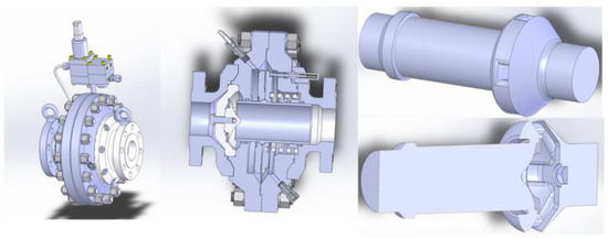The obtained geometric model of the internal flow field of the pressure regulator is imported into the Workbench meshing module (Figure 3). The overall grid size is set to be 0.006 m. As the flow condition at the sleeve and core of the valve drastically changes, the mesh are densified at these locations, with a grid size of 0.002 m. Additionally, an expansion layer is set at the boundaries to better simulate the flow boundary layer. The final number of mesh nodes obtained is 237,259.