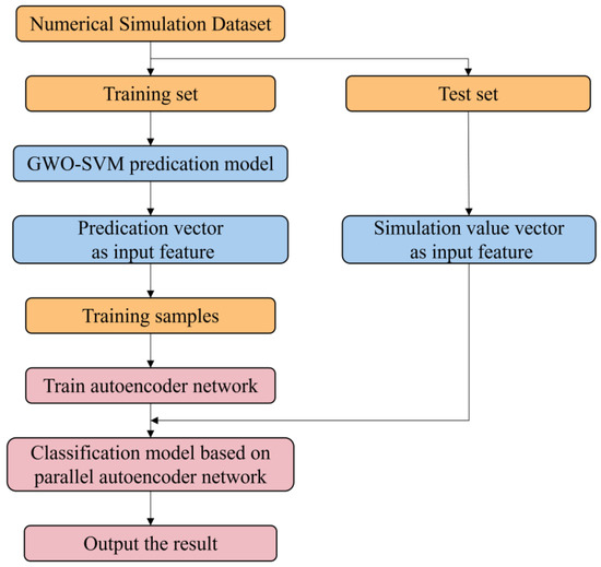 In the AE-GWO-SVM algorithm, GWO-SVM is used to predict the key parameters of the pressure regulator flow field under different fault modes with varying openings and boundary conditions. The AE technology is then employed to handle the difference between predicted and actual values and achieves the detection of abnormal features.