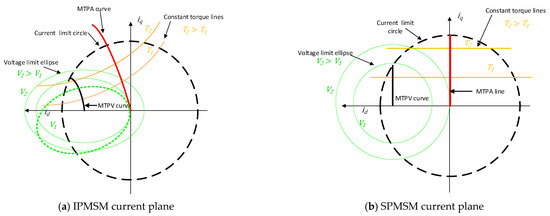 Current planes of IPMSMs and SPMSMs.