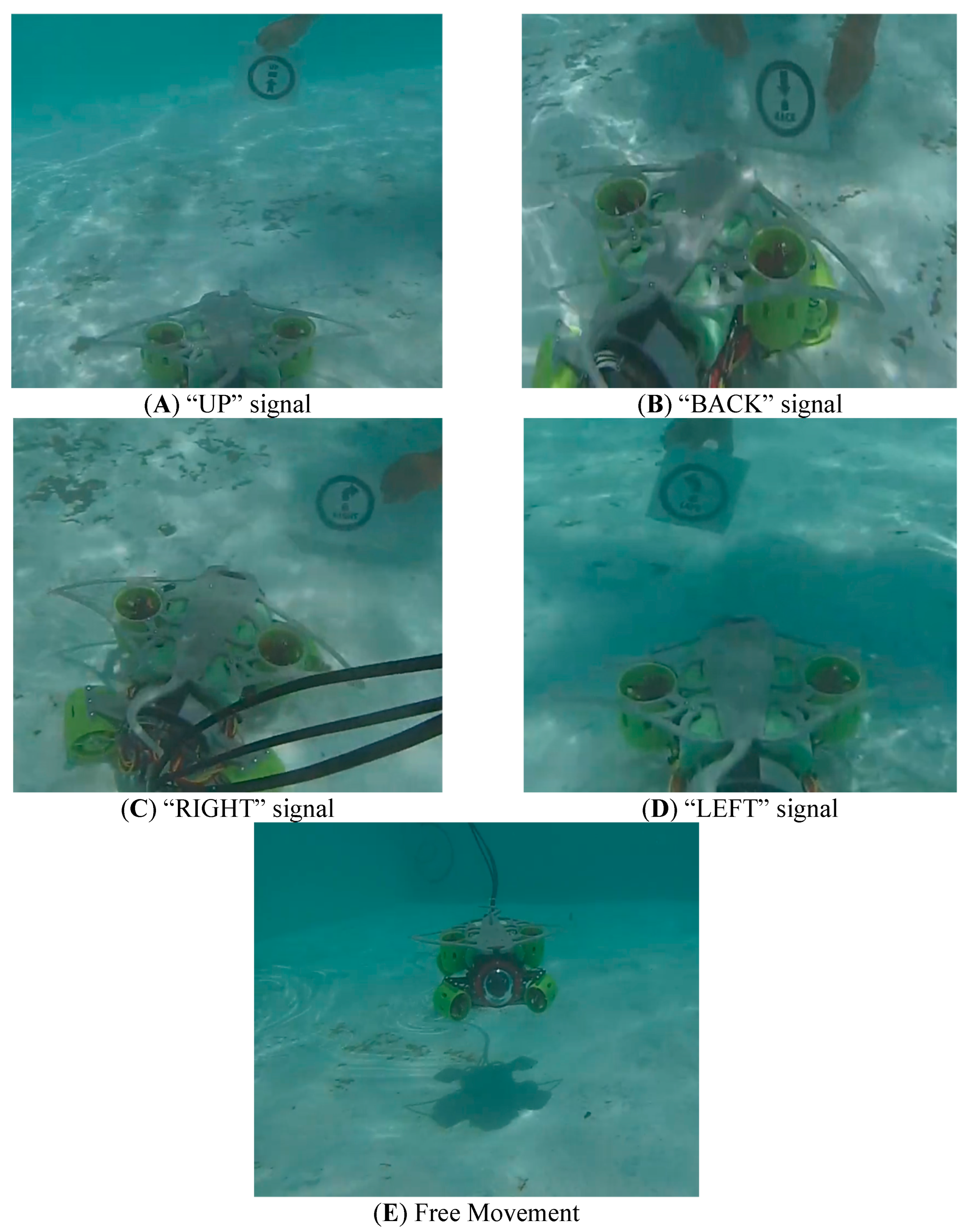 - Plotnikov, V.A.; Akhtyamov, T.R.; Serebenny, V.V. Diver Gestures Recognition in Underwater Human-Robot Interaction Using Recurrent Neural Networks. In Proceedings of the 2024 6th International Youth Conference on Radio Electronics, Electrical and Power Engineering (REEPE), Moscow, Russia, 29 February–2 March 2024; pp. 1–5. [Google Scholar]