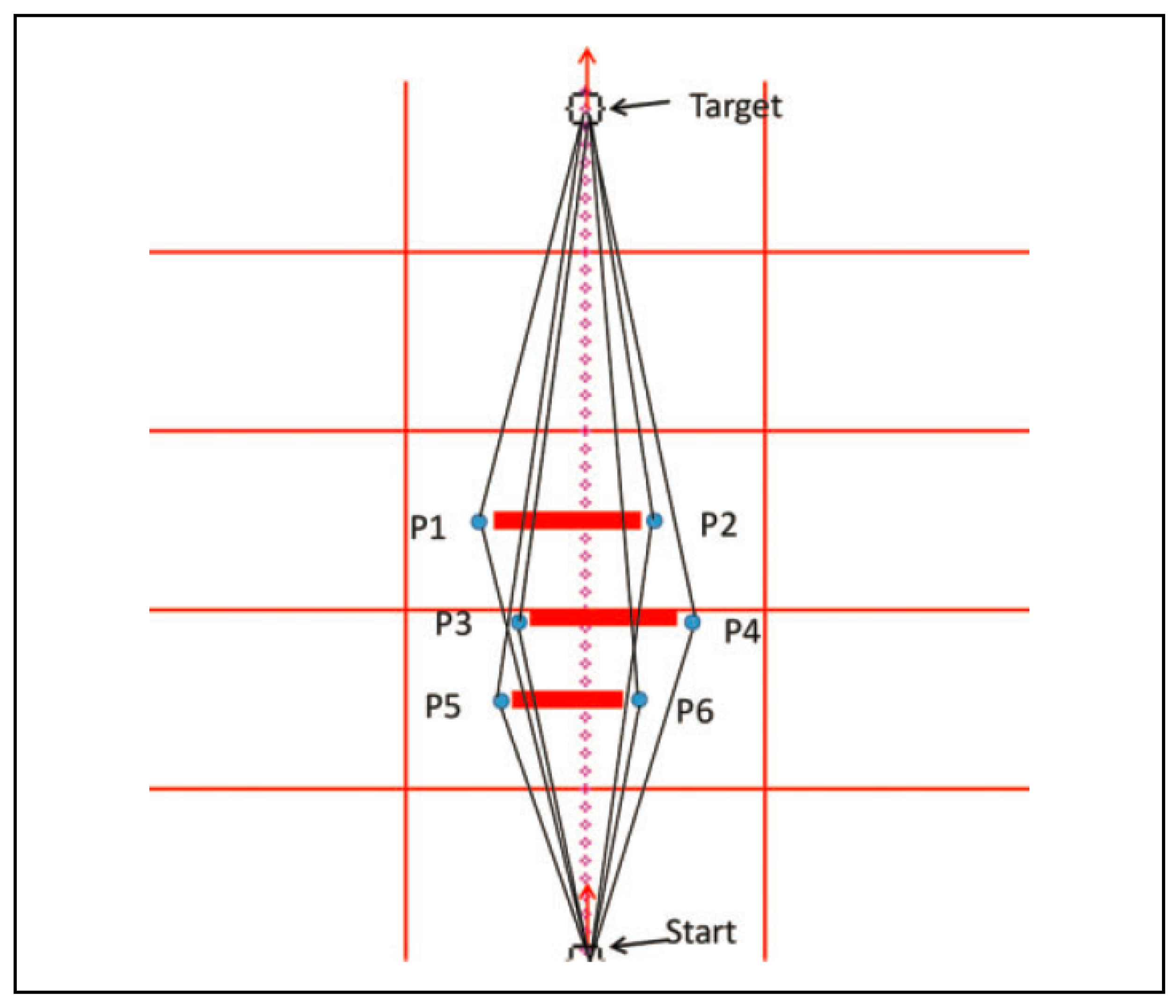 To enhance obstacle avoidance, the algorithm identifies key points near blocked guidelines and regenerates sub-guidelines that circumvent the obstruction. The best candidate is chosen based on virtual-speed-based cost–time. Figure 3 shows the process of the key point-based A* algorithm, as proposed by Erke et al. [28].