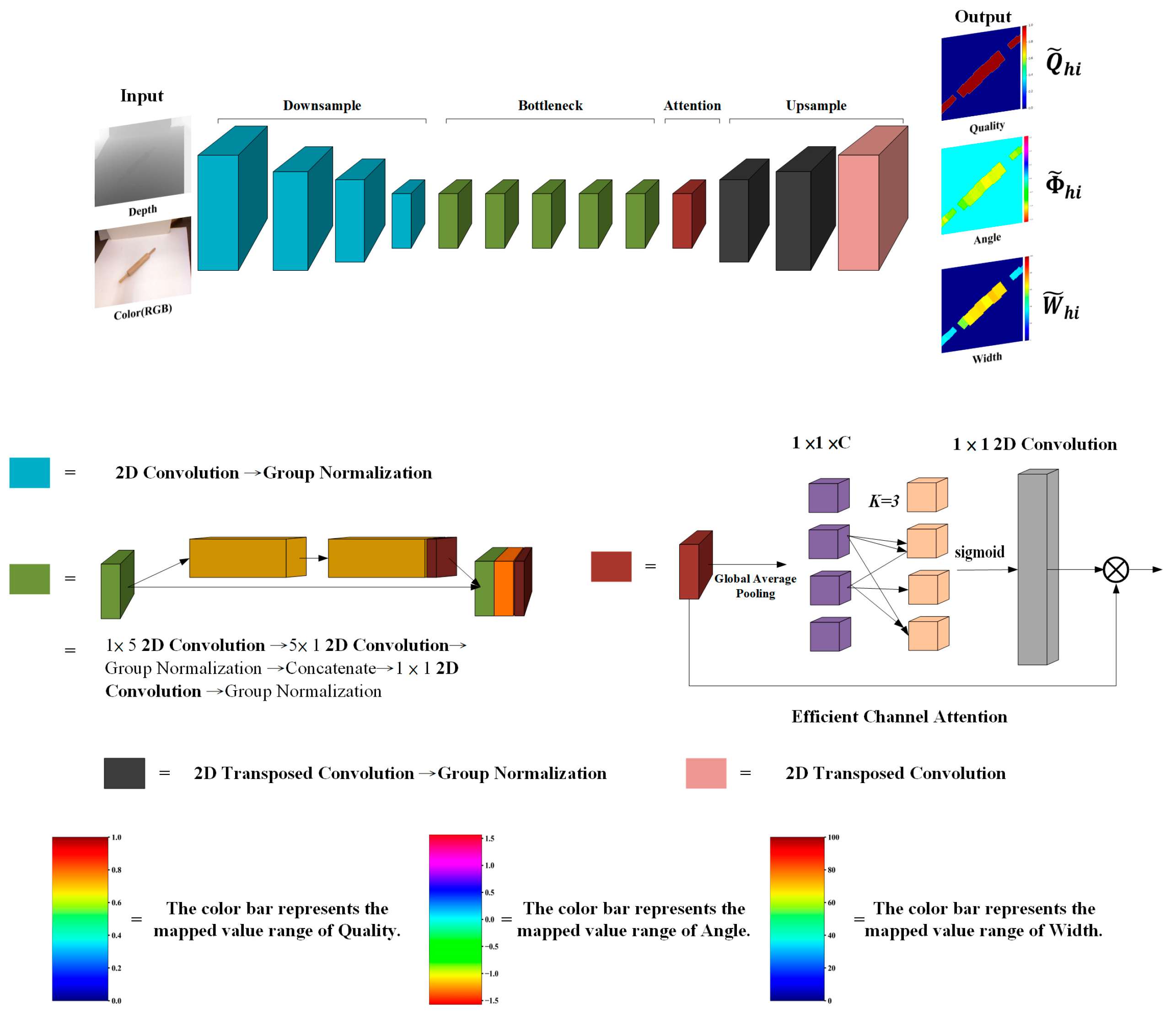 - Liu, D.; Feng, X. A Real-Time Grasp Detection Network Based on Multi-scale RGB-D Fusion. In Proceedings of the International Joint Conference on Neural Networks (IJCNN), Yokohama, Japan, 30 June–5 July 2024. [Google Scholar]