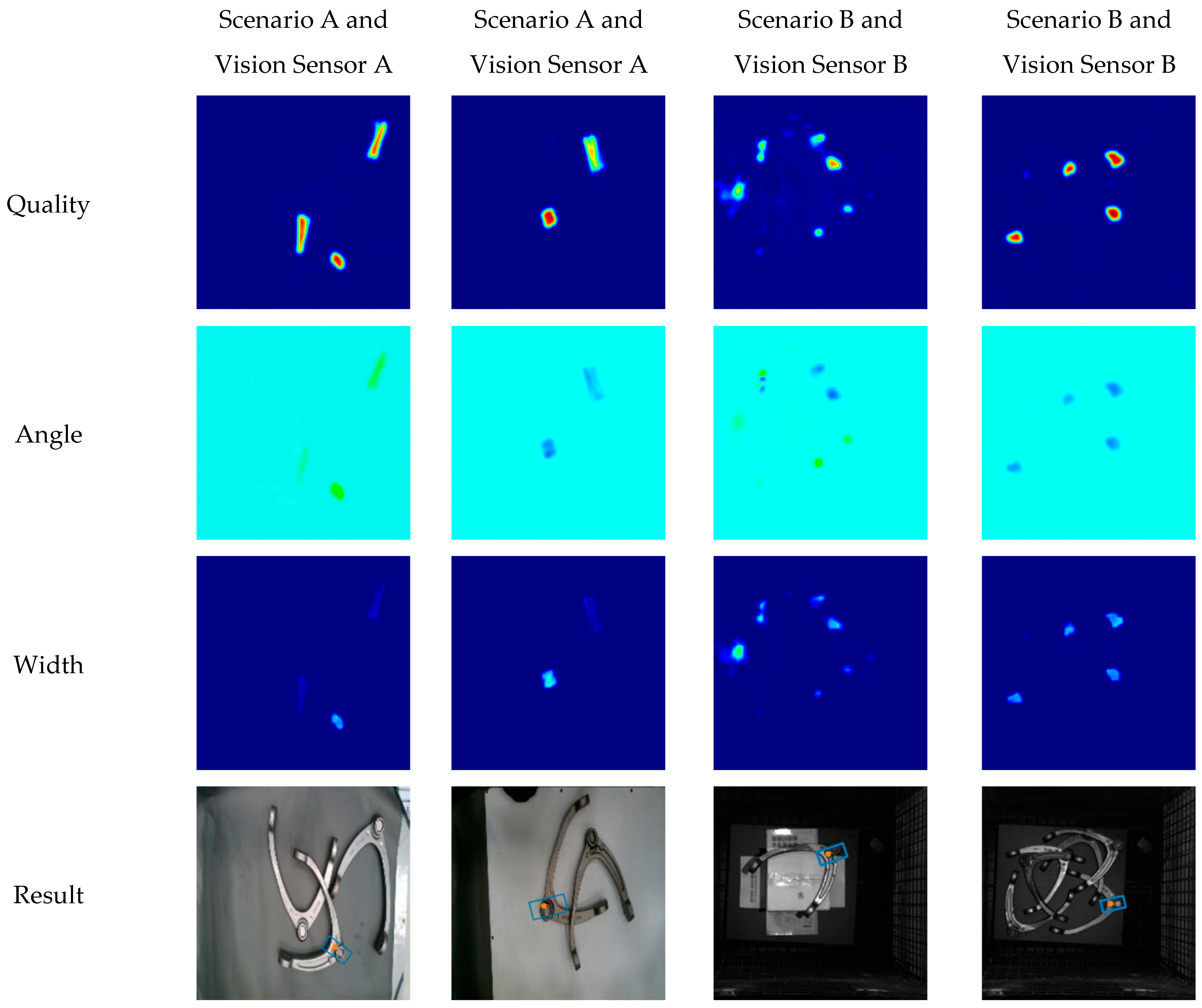 - Cao, H.; Chen, G.; Li, Z.; Feng, Q.; Lin, J.; Knoll, A. Efficient Grasp Detection Network with Gaussian-Based Grasp Representation for Robotic Manipulation. IEEE/ASME Trans. Mechatron. 2023, 28, 1384–1394. [Google Scholar] [CrossRef]