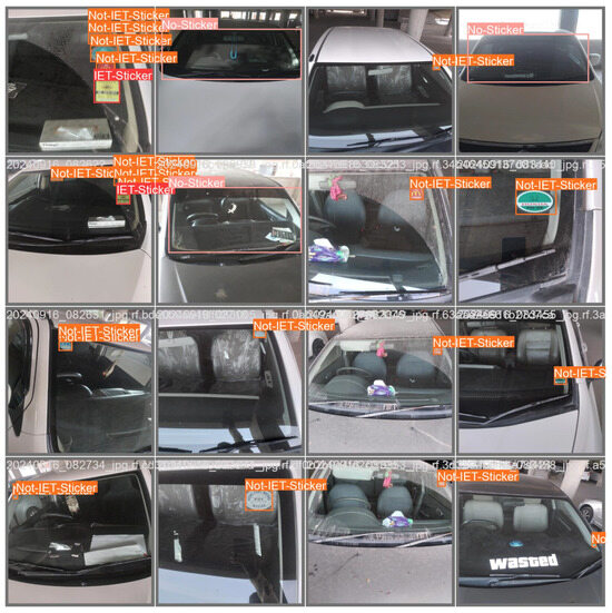 The distribution of images per class is given in Figure 3. As can be observed, a majority of the samples do not contain any stickers. However, there is also a wide variety of vehicles displaying non-NFC IET stickers along with NFC IET stickers. This diversity of cases supports the practical implementation of the proposed smart gate access control system.