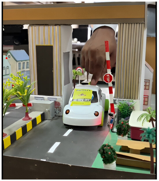 To test the real-time performance of the model, a prototype was built in which 15 model toy cars with varying classes of stickers were used to check the control of gate opening and closing. The prototype model is shown in Figure 9.