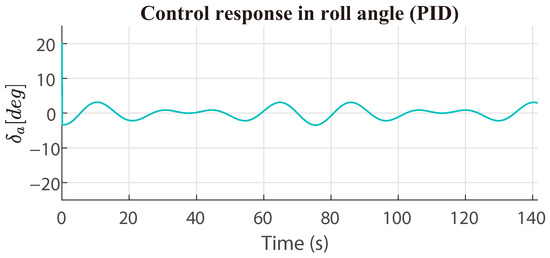 Thus, to design the linear controllers Proportional–Derivative (PD) and Proportional–Integral–Derivative (PID) for the roll angle, let us define an error , with as the desire roll angle, and defines the actual roll angle in the coaxial-rotor MAV. The PD control law for roll angle is given by [24,25]: