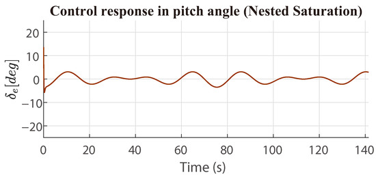 where are positive definite gains. The nested saturation control for pitch angle is developed with the methodology presented in the Equations (23)–(26). Thus, the nested saturation control to stabilize the pitch angle is given by: