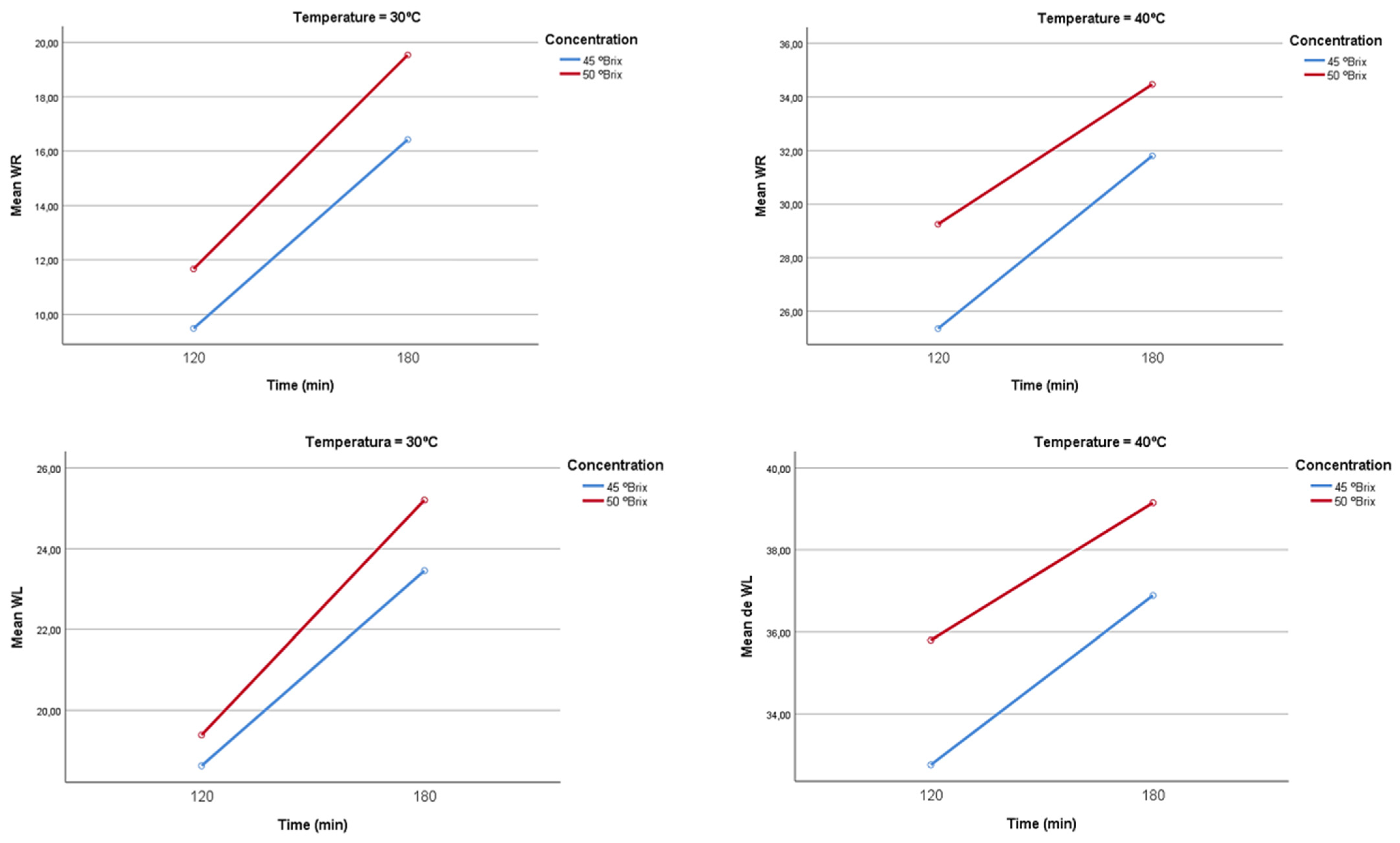 | Treatment | Concentration (°Brix) | Temperature (°C) | Time (min) |