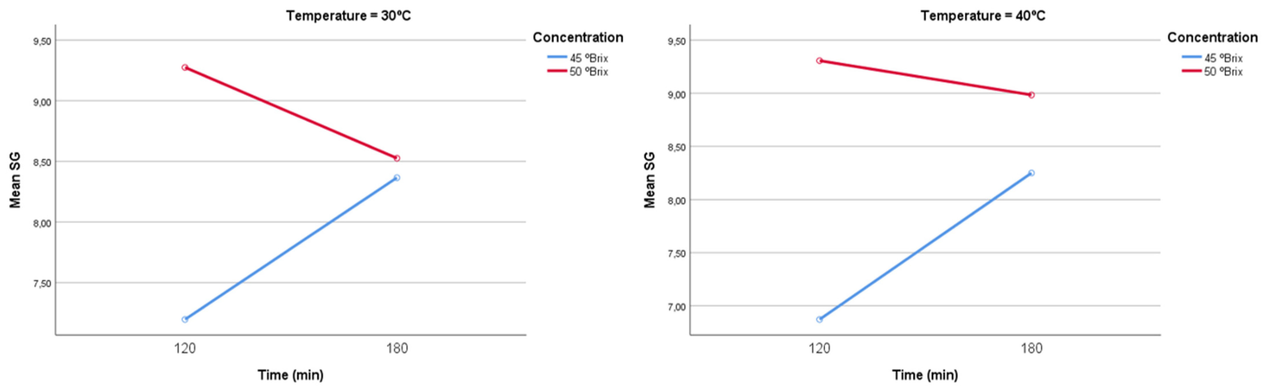 - do Carmo, J.R.; Corrêa, J.L.G.; Resende, M.; Cirillo, M.Â.; Corona-Jiménez, E.; Telis-Romero, J. Mango Enriched with Sucrose and Isomaltulose (Palatinose®) by Osmotic Dehydration: Effect of Temperature and Solute Concentration through the Application of Multilevel Statistical Models. J. Food Process. Preserv. 2022, 46, e17147. [Google Scholar] [CrossRef]