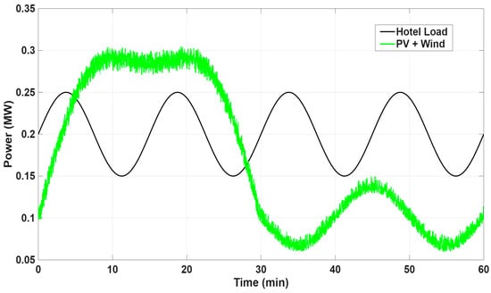 MPPT Efficiency: The PV and WTG MPPT controllers are idealized: it is assumed they always extract the maximum available power (e.g., Cp maxima), without dynamic overshoot or tracking error.