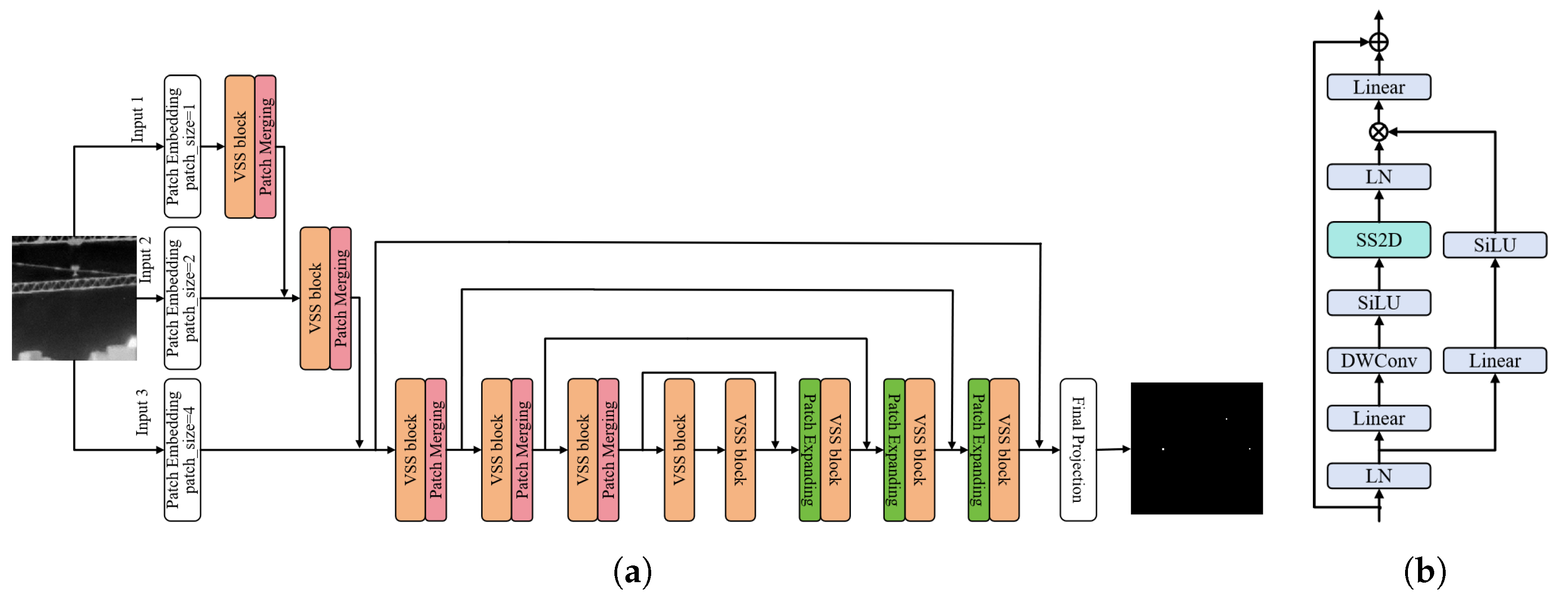 - Liu, Y.; Tian, Y.; Zhao, Y.; Yu, H.; Xie, L.; Wang, Y.; Ye, Q.; Jiao, J.; Liu, Y. VMamba: Visual State Space Model. In Proceedings of the 38th International Conference on Neural Information Processing Systems (NeurIPS 2024), Vancouver, BC, Canada, 9–15 December 2024. [Google Scholar]