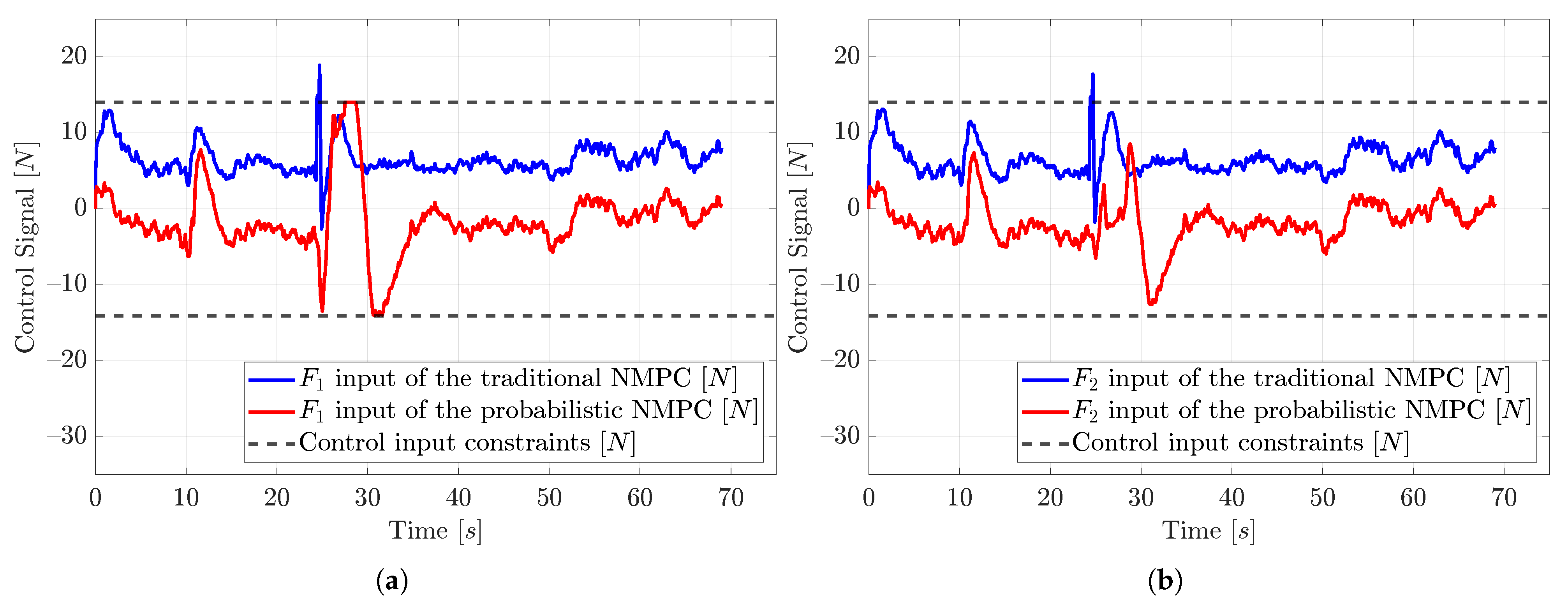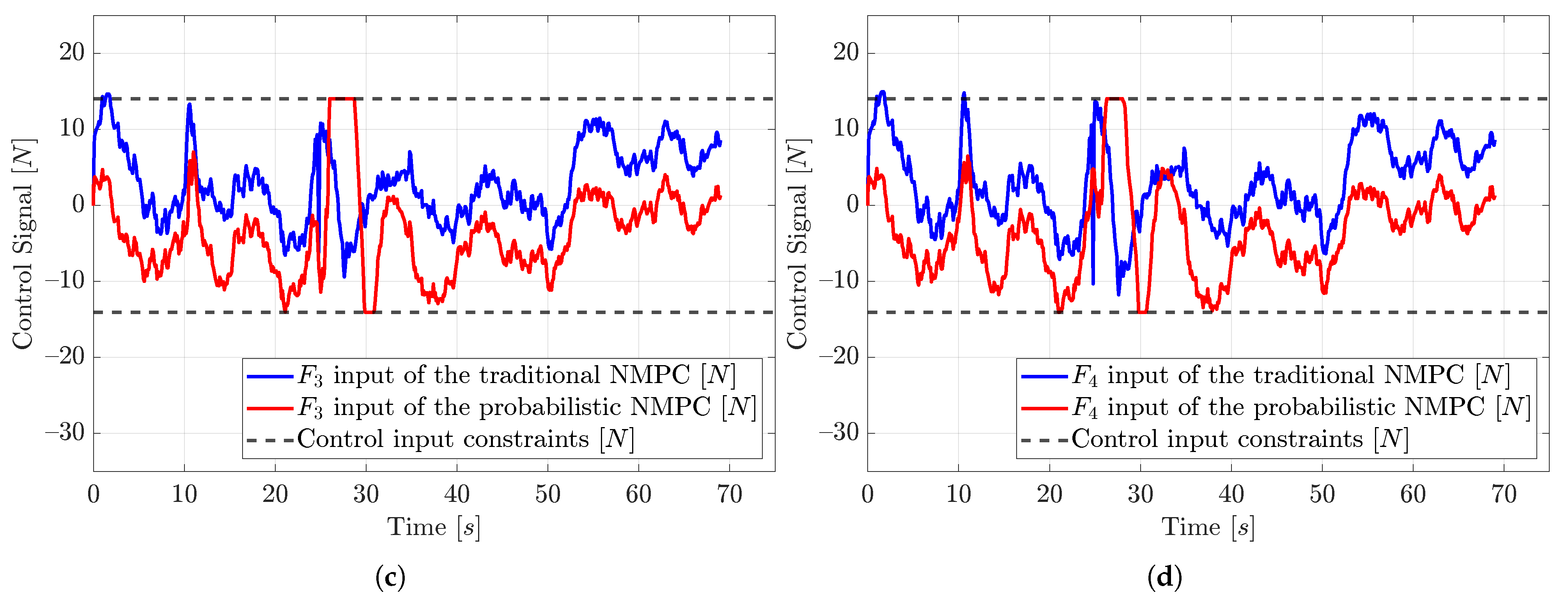 Figure 9 show the control input and the observed control input disturbances of the probabilistic NMPC for the corresponding input signals