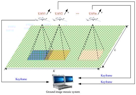 Suppose the length of the image mosaic task area is and the width is . In order to ensure that the image mosaic can be realized , the overlap rate of two adjacent UAV images is set so that if the number of UAVs is , then the following should be satisfied: