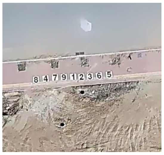 In order to better observe the clarity of the map, we laid the digital target 1–9 with a length of 60 cm and a width of 40 cm on the ground, as shown in Figure 12. The digital target was laid on the side of the road before the UAV took off.