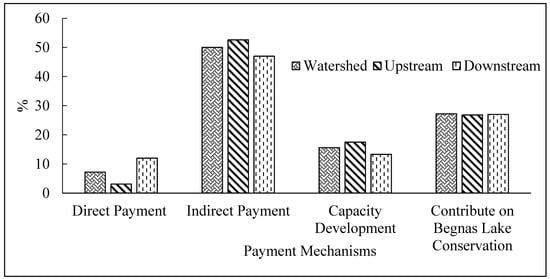 There were differing views on the choice of institutions when it comes to implementing PES mechanisms. The majority of upstream respondents believed that community forestry was the most suitable institution, while people living in the downstream region preferred other government institutions to implement PES mechanisms. The indirect payment was the most preferred PES mechanism by the local communities in the Begnas area. This study suggests that there are adequate pre-existing institutions at the local level that could play an important role in successfully implementing PES mechanisms. We recommend that strengthening such institutions, formulating a clear legislative framework, and conducive policy ambiance is essential before making them involved in the PES mechanism.