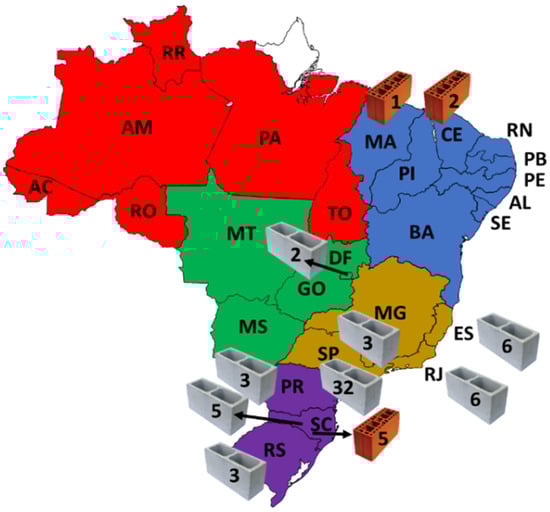 Caldas, L.R.; Pittau, F.; Schaeffer, R.; Saraiva, A.K.E.B.; Paiva, R.d.L.M.; Toledo Filho, R.D. Concrete vs. Ceramic Blocks: Environmental Impact Evaluation Considering a Country-Level Approach. World 2021, 2, 482-504. https://doi.org/10.3390/world2040030