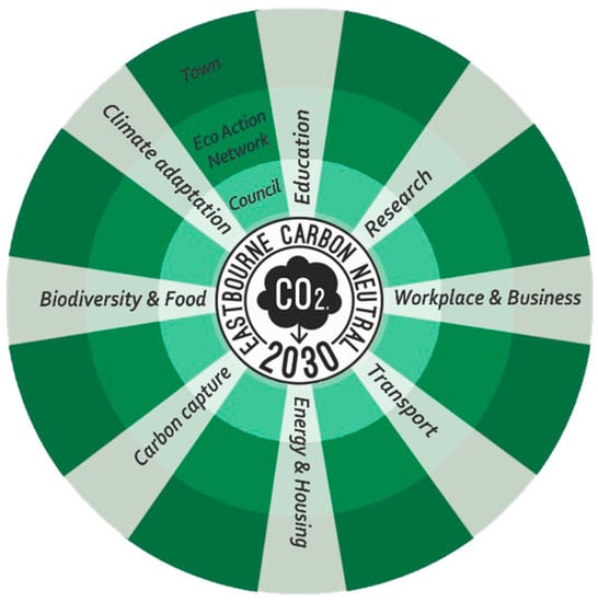 - Eastbourne Carbon Neutral 2030. Baseline Report and Action Plan November 2020. Eastbourne Borough Council. Available online: https://democracy.lewes-eastbourne.gov.uk/documents/s18246/Eastbourne%20Carbon%20Neutral%202030%20A%20plan%20for%20action%20-%20Appendix%201.pdf (accessed on 18 October 2021).