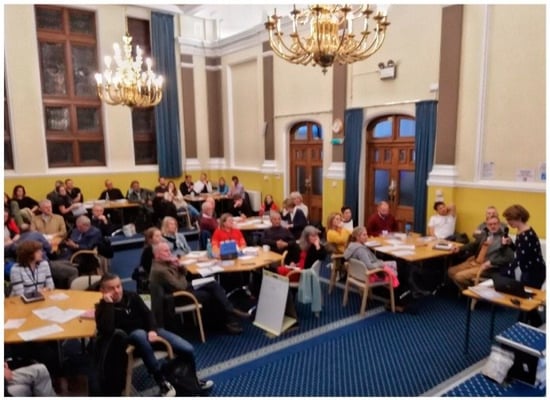 The meeting the next day, with around 25 of us—EBC Councillors and officers, Chamber of Commerce representatives and eco activists—gathered in the Town Hall, was equally important and positive. Councillor Richard told us about the Council’s plans to appoint a new Sustainability Officer, and about Council funds available to the Carbon Neutral 2030 campaign—around GBP 10,000 per annum. He emphasised EBC’s limited capacities, both in terms of resources and remit: as a two-tier authority, some of the sectors relevant for becoming carbon neutral, such as transport and roads, are under the remit of East Sussex County Council (ESCC), not EBC. We all agreed that EBC needed the support of activist groups, experts and citizens to achieve the Carbon Neutral 2030 target. We also discussed different definitions of this, settling, still somewhat ambiguously, on ‘carbon neutrality within town boundaries’, and resolved that we would all come together in the Eco Action Network (EAN). This network would register as a Community Interest Company (CIC), with activists as directors, so that we could raise funds. Moreover, we decided to form focused working groups, each bringing together Councillors, citizens and ‘specialist’ (professionals, long-standing experts and those working in existing relevant NGOs or pressure groups). Because I had already for some months been trying to set up a local eco-school network through my small Parents for Future group, we decided that I would lead the education group (Figure 2).