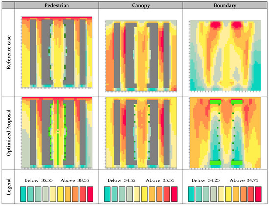 Microclimate parameters of the optimized proposal compared to the reference case.