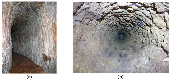 (a) Tunnel of the Hadrianic aqueduct. (b) Well of the Hadrianic aqueduct.