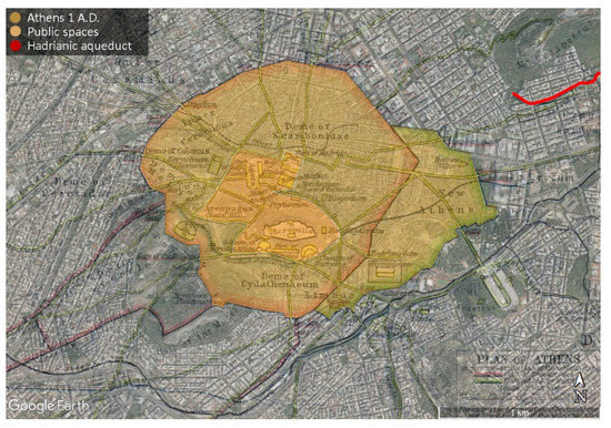 - Historical Map of Athens, Superimposed on a Plan of the Modern City. Approximate Date of the Map: 200 A.D. Credits: University of Texas at Austin. Historical Atlas by William Shepherd (1923-26). Available online: http://www.emersonkent.com/map_archive/athens_200_ad.htm (accessed on 25 January 2022).