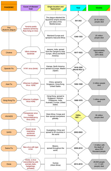 Pandemic events beginning the year 500 to present times in a timeline. [135,136,137,138,139,140,141,142,143,144,145,146,147,148,149,150,151,152,153,154,155,156,157].