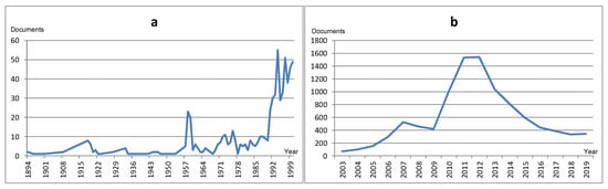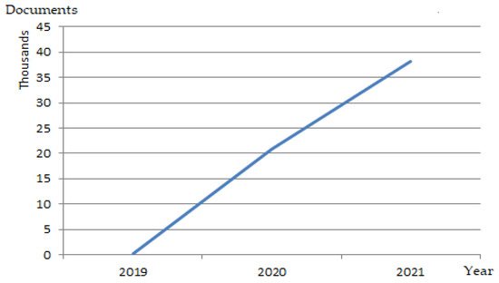 The pandemic timeline, Figure 1 provides an overview of past events related to alternating outbreaks [135,136,137,138,139,140,141,142,143,144,145,146,147,148,149,150,151,152,153,154,155,156,157]. The record of human efforts with the aim to overcome pandemics, having changed over time as data—in the form of documents representing studies in various fields—is a starting point for human to consider in understanding their world. The number of papers per year drawn from a reputable Scopus database at the time of writing this review exhibits different behaviors, representing a period of growing concern about the pandemic. Figure 2a shows an increase in studies addressing problems of a pandemic from the human side of life. Figure 2b is a period of confusion or a tug-of-war between the persistence and despair of human interest to face the natural laws that apply to the pandemic. Figure 3 exhibits a seriousness period, where all resources focus on the ability to deal with an unexpected outbreak (COVID-19).