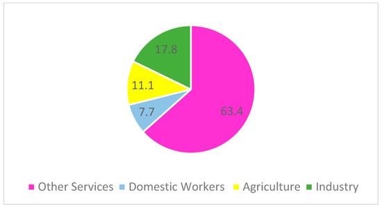 The share of migrant women in different sectors in 2020 [55].