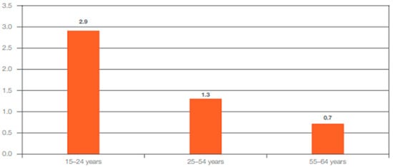 Percentage of workers employed in temporary agency work by age [24].