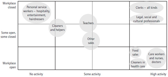 Several documents show that women are significantly more affected than men by the economic downturn resulting from the COVID crisis [49,50] (see Figure 8). In the spring of 2020, childcare facilities and schools were closed for several months, intensifying housework and childrearing, especially for women. This could likely have costly consequences, especially for women entering the labor market [51].