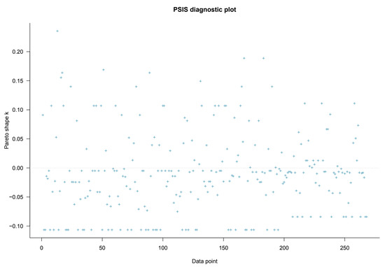 The PSIS diagnostic plot shows that all k values are below 0.5, implying that the model has a high goodness-of-fit with the data (see Figure 2).