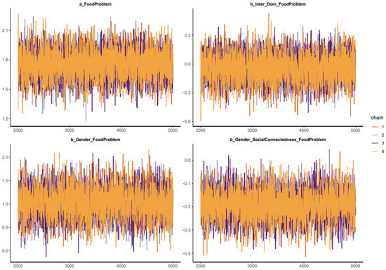 To check the robustness of the model, we performed the prior-tweaking technique on Gender_SocialConnectedness using two prior distributions: belief on effect and disbelief on effect. The prior demonstrating our belief that the moderation effect of Gender_SocialConnectedness is positive was set using a normal distribution with a mean of −0.5 and a standard deviation of 0.3. The prior demonstrating the disbelief about the moderation effect was set using a normal distribution with a mean of 0 and a standard deviation of 0.3. The simulated results using informative priors are almost similar to the generated results employing uninformative priors (see Table 2), which indicates the model’s high resistance to initial changes in priors. In other words, the model can be deemed robust.