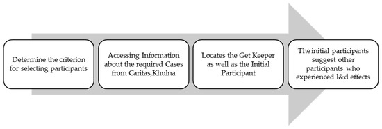 The study utilizes a purposive sample method that is in line with the research goals. A criterion sampling approach is utilized to identify participants in the selected study locations. Criterion sampling involves the selection of all examples that satisfy a preestablished relevance criterion [73] (see Figure 4 for details). This study selects individuals residing in rural areas located in the coastal communities of Khulna and Satkhira districts (see Table 1 for details). These places are prone to frequent extreme climatic occurrences as a result of their geographical positioning.
