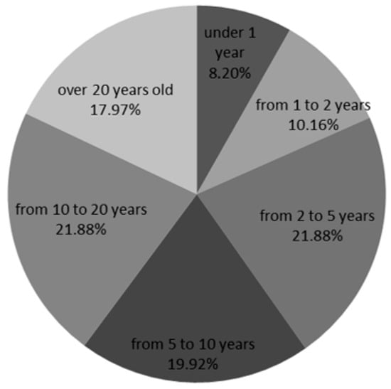 Among the surveyed companies, the largest group made up of 39.06% were small enterprises, 33.2% were medium-sized companies, and the smallest group were large companies. Micro companies accounted for 21.88% of all the respondents (Figure 7).