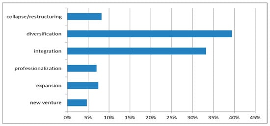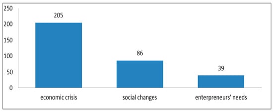 Studies on the problems of companies and their ways of overcoming crises have appeared in the literature [,,,]. The areas of change concerned the development of business models in companies that experienced market turbulence. Changes were initiated after a strategic indication of the strategies that companies adopt and how they want to achieve their goals [].
