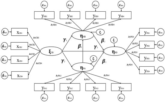 The proposed model includes three endogenous latent variables, namely healthy eating behaviors (HB), product attributes (PA), and clean food purchase decision (PD) (m = 3), along with one exogenous latent variable, culture background (CB) (n = 1). The structural equation model (SEM) depicting the relationships among these variables is illustrated in