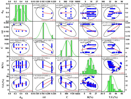 LM num: 5 T.E. (%) = −35.6058 × d50 − 0.0056 × C − 1.207 × R + 50.2012