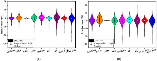 The number of estimators, maximum depth, and n-estimators in AdaBoost as well as GBM are known as hyperparameters, and they are essential for regulating model complexity and avoiding overfitting. Hyperparameters such as epsilon, maximum iterations, and the selected kernel function (RBF) in SVM have a big influence on how well the model works and how well it can handle nonlinear connections. Regarding FFNN, the model’s learning and inference abilities are influenced by several parameters, including the Hidden layer sizes, batch size, learning rate, and maximum iteration for modeling. For M5P, RF, RT, and M5Rules, model batch size, min Num Instances, and max Depth are a few important hyperparameters to be considered for modeling. To obtain the best results and generalization across various datasets and challenging domains, these hyperparameters must be properly tuned.