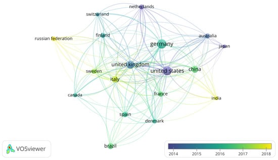 4.2.3. Co-Authorship Co-Occurrences Related to Countries