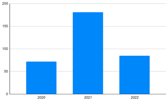 The number of COVID-19-related posts in the respective years (2020–2022).