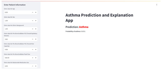 The development of a Streamlit-based application further enhances the model’s accessibility, ensuring its relevance in real-world clinical settings. This user-friendly tool supports clinicians by offering real-time predictions and interpretability insights, streamlining asthma management workflows, and facilitating proactive decision-making.