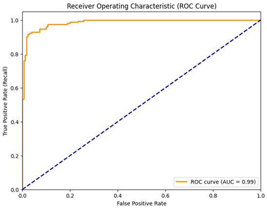 Validation on the CAMP dataset demonstrated robust performance, with the model achieving an overall accuracy of 93% and an AUC-ROC of 0.97. Precision, recall, and F1 scores were balanced across the majority and minority classes, confirming the model’s ability to generalize to a population distinct from the Kaggle dataset. Notably: