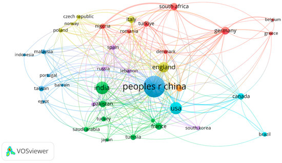 Initially, the analysis aimed to identify the countries that have contributed to the topic. A country was included only if it had at least 10 related publications. Figure 1 shows the bibliometric map, which divides the 37 collaborating countries into seven color-coded clusters. Countries positioned higher on the map have made more significant contributions to the issue. China, India, and the USA are among the most influential countries. Thicker connections between countries indicate more frequent collaboration. The grouping of countries into clusters is presented in Table 1.
