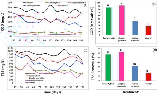 - The removal of pollutants will be higher in systems with plants than in systems without vegetation (control).