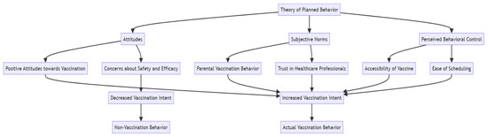 The Theory of Planned Behavior (TPB), developed by Icek Ajzen [12], is a widely used framework for understanding health-related decision-making, including vaccination, as it captures individual cognitive factors and broader social influences. For example, TPB has been used to explain why individuals choose to get vaccinated or avoid vaccination in the context of influenza [13]. According to TPB, vaccination intentions are primarily driven by three key factors: attitude, subjective norms, and perceived behavioral control, each of which is influenced by broader socio-political and economic conditions.