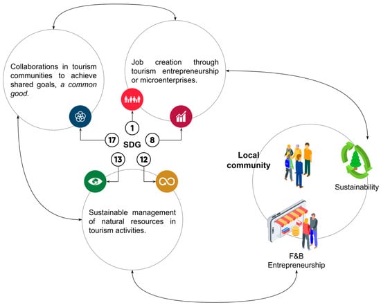 SDGs in the dynamics of rural communities with tourism vocation. The numbers correspond to SDGs referenced in the figure: 1 (No poverty), 8 (Decent work and economic growth), 12 (Responsible consumption and production), 13 (Climate action), and 17 (Partnerships for the goals). Source: author’s own work.2. Methods.