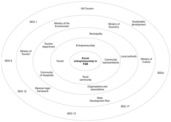 Rural tourism could help improve living conditions in Yecapixtla by implementing tangible strategies adapted to the nature of the place. Therefore, adopting a systemic approach presents an opportunity to enhance tourism governance in Yecapixtla, along with the need to create structural conditions that enable SE initiatives to operate effectively and with greater influence. The creation of sustainability indicators tailored to Yecapixtla would provide a benefit at the “environment” level within the system under study, by offering measurements that reflect the reality of the elements contributing to sustainable development, thereby directly supporting the achievement of the identified SDGs. Such reflections are essential for moving towards more equitable and sustainable development models in rural contexts, where SE can act as a true agent of change.