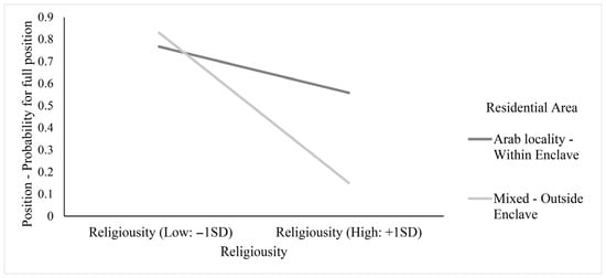 Simple Slopes for Religiosity on type of position (full/part time) at Different residential environments (Jewish/Arab).