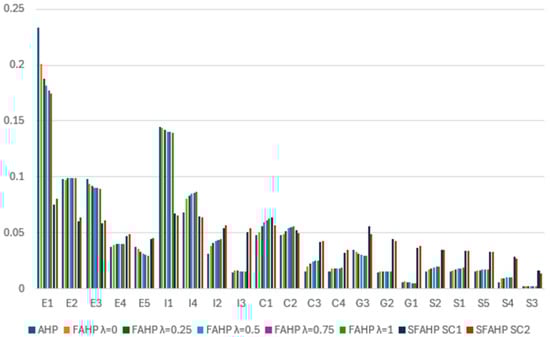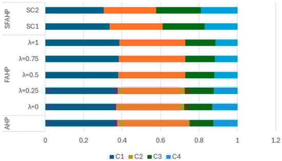 Applying score function formulas, the weights for all criteria and sub-criteria were obtained. Crisp numbers were calculated in two different ways.